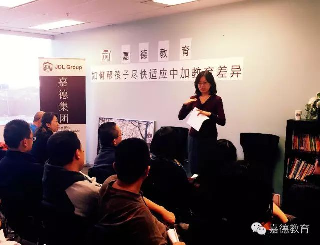 十一月二十九日下午两点,嘉德教育成功举办了“如何帮孩子尽快适应中加教育差异”讲座。几十位家长和学生来到现场,仔细倾听了教育专家Emily和哈佛妈妈Lizzie的精彩演讲。